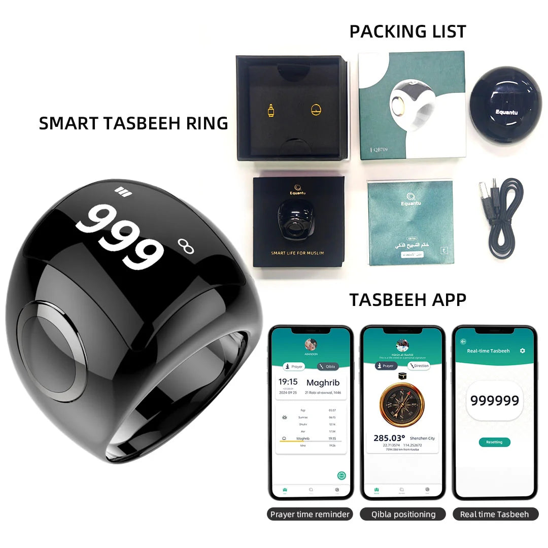Some models support app connection via Bluetooth to track counts, goals, and prayer times.